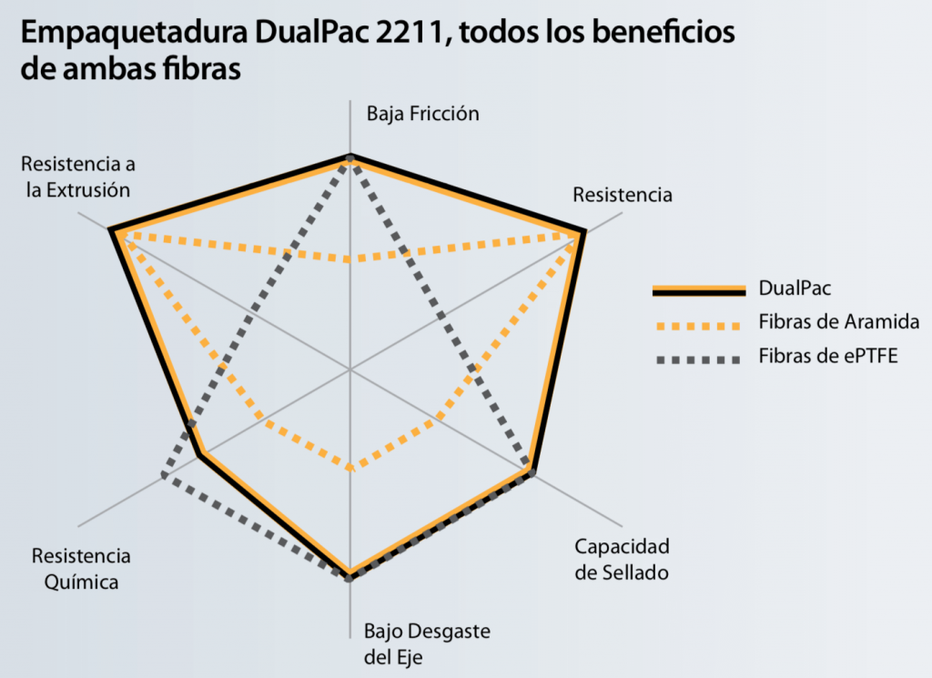 – Alcanza una vida útil significativamente más larga de la empaquetadura utilizando la tecnología de empaquetaduras DualPac cuya patente está en trámite