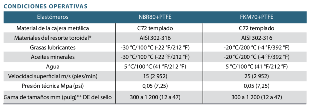 – Los labios del sello de diseño especial se combinan con un compuesto autolubricado para reducir la fricción